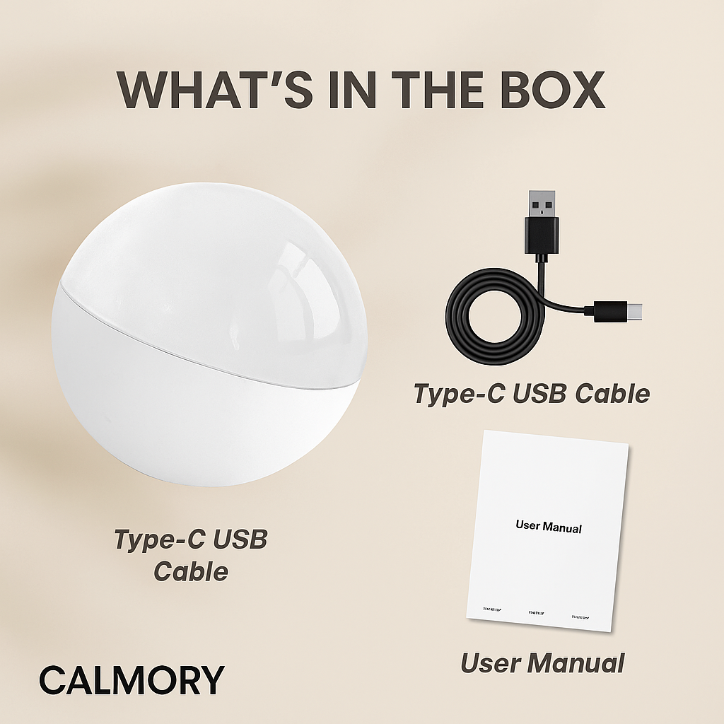 Simply plug Calmoryâą into your computer using the USB-C cable.